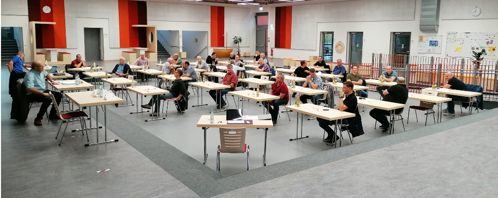 Nach den Sommerferien und in der entspannteren Corona Situation konnte nun die Gelegenheit genutzt werden, sich wieder in der Vollversammlung bestehend aus Obersten, Offizieren, Funktionsträgern, Rottmeistern und dem amtierenden König Walter Rieks zu treffen. Daher traf man sich am Freitag, den 28.08. in der Aula der kath. Grundschule, damit auch die Abstandsregeln sicher gewahrt werden konnten.